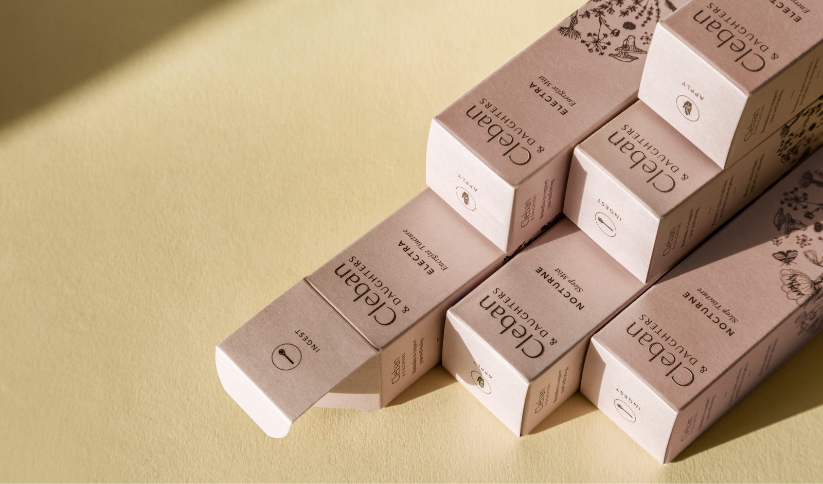 We worked to evolve Cleban and Daughters’ logo and packaging system. Our mission was to bring clarity, hierarchy, and simplicity to their visual identity while maintaining the essence of femininity, sophistication, and nature-inspired beauty.