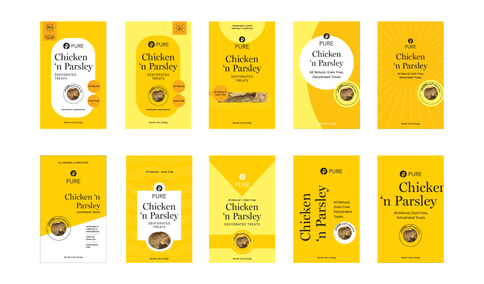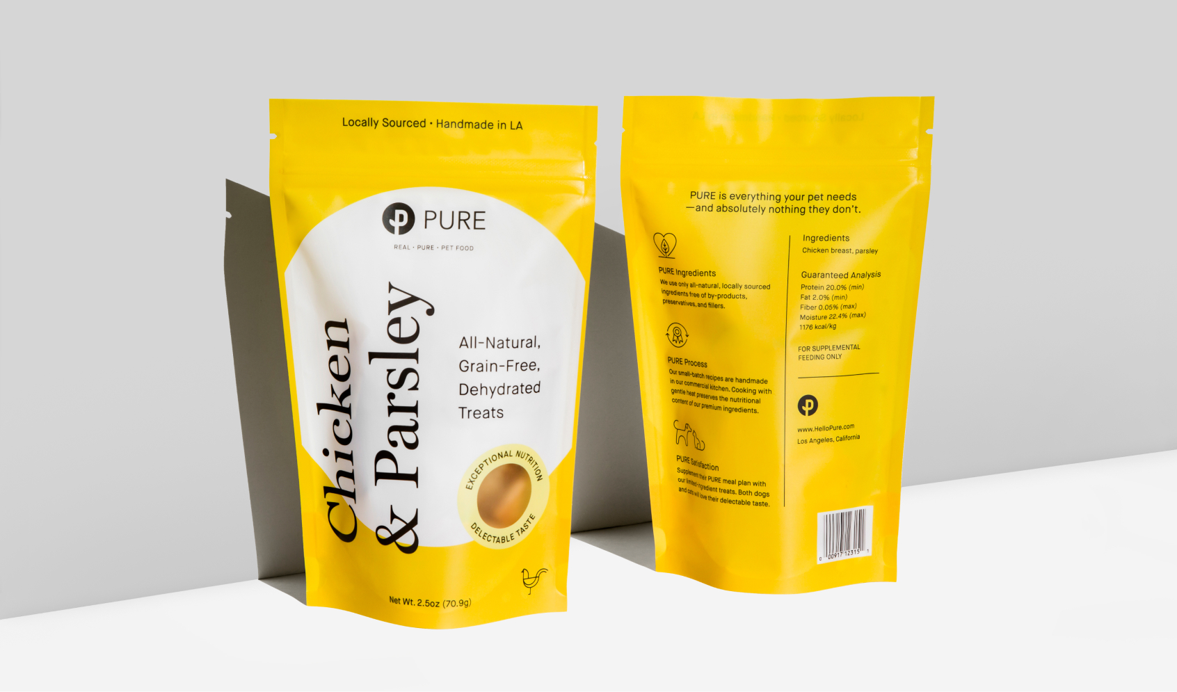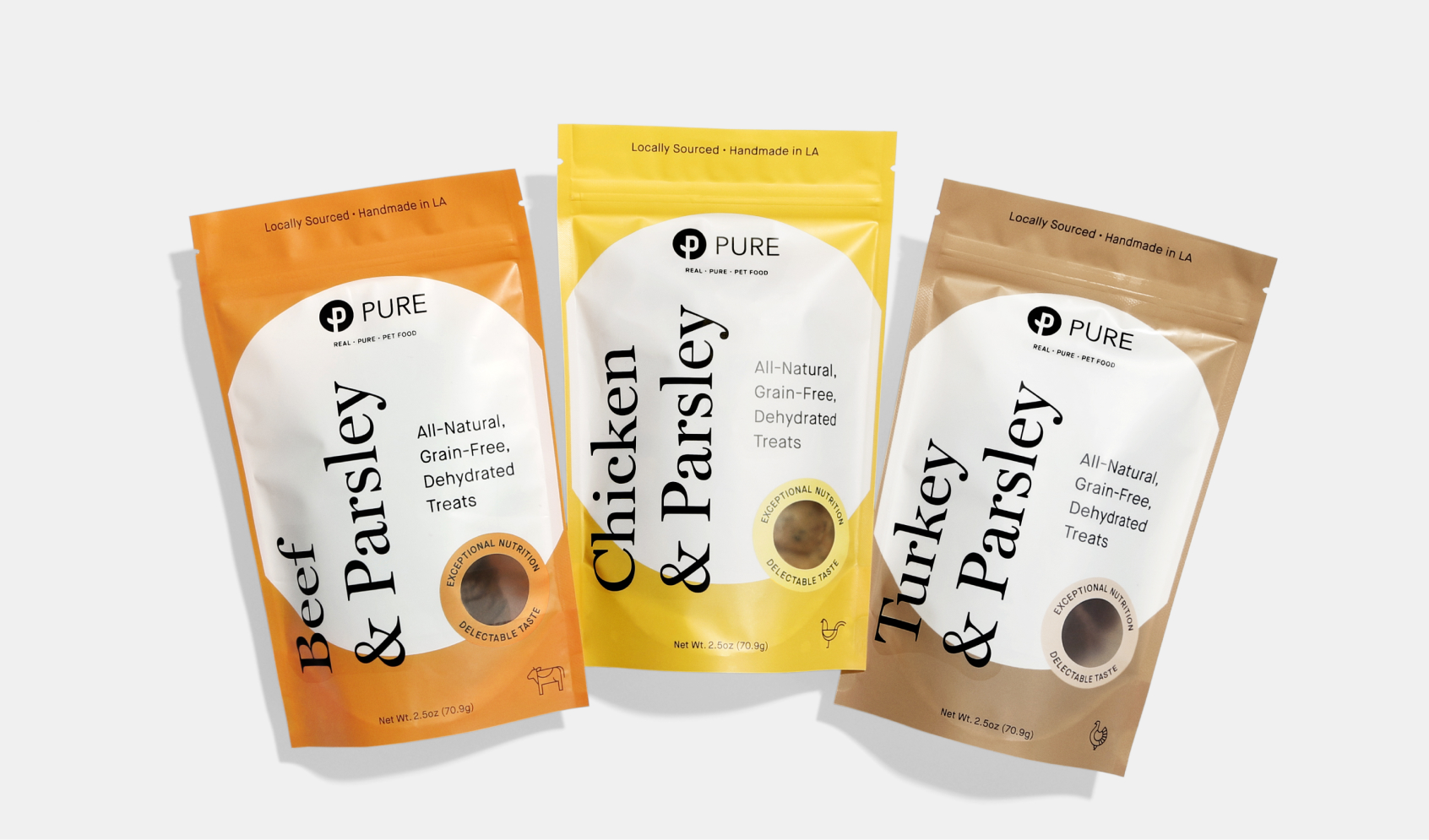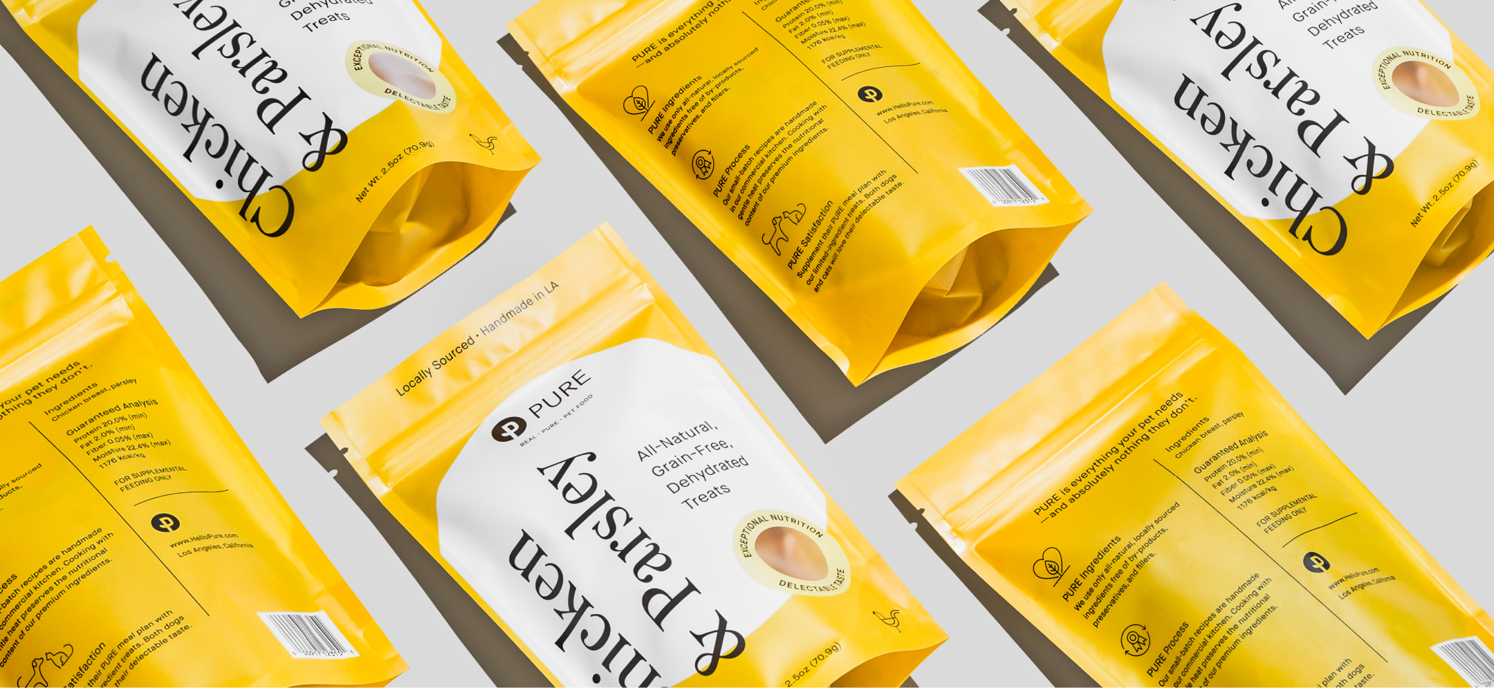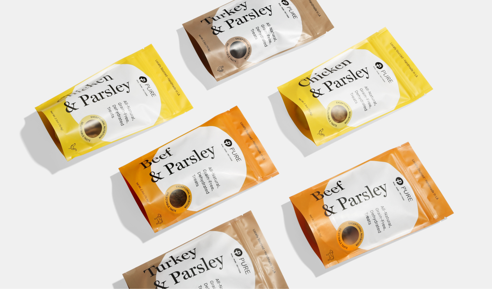 Pure, an ultra-premium dog food brand approached us for a redesign of their treat packaging.
